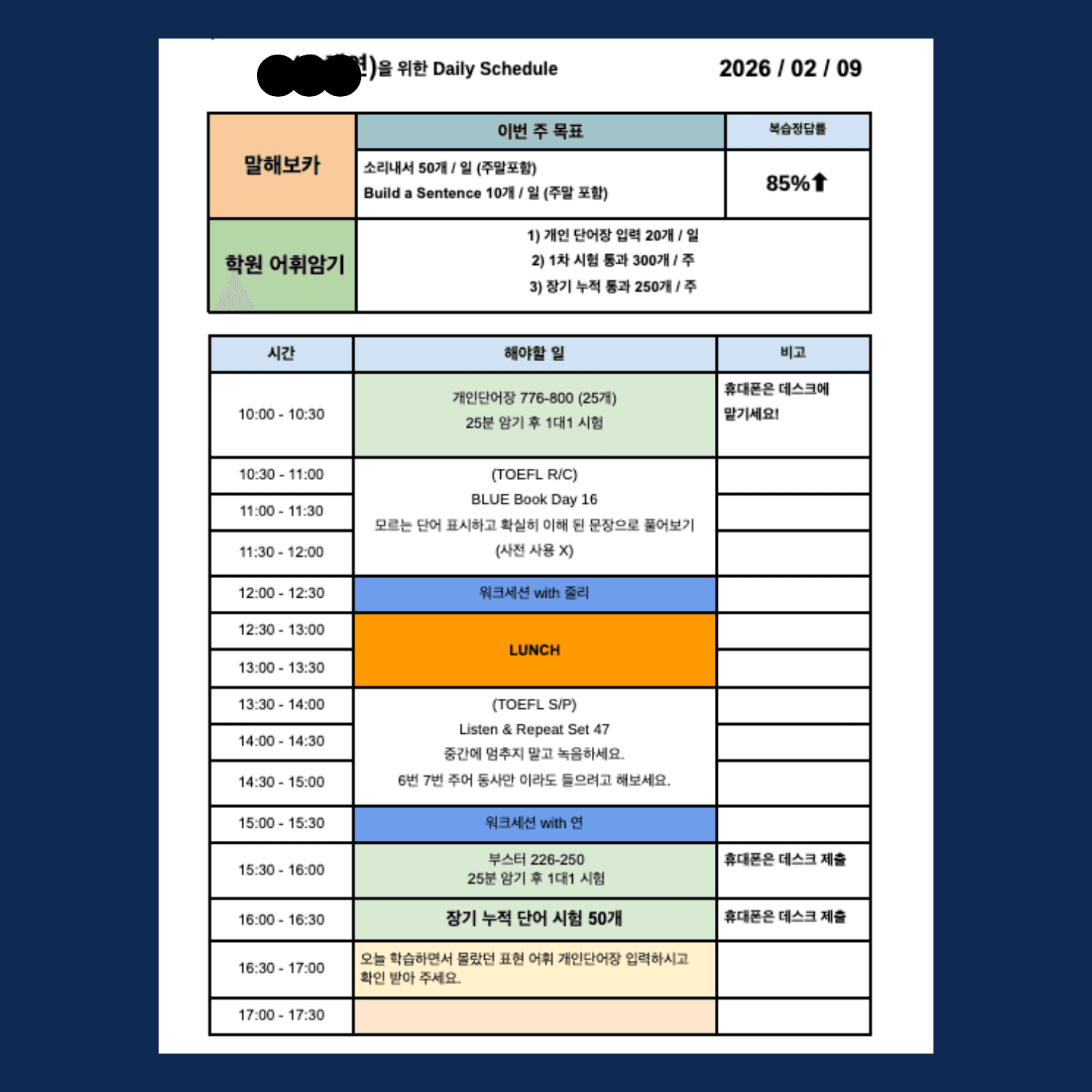 모든 학생에게 맞춤 Daily 스케쥴이 주어집니다. (1대1 관리)